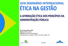 A Comissão de Ética Pública (CEP) promove nos dias 26 e 27 de outubro de 2017, o XVIII Seminário Internacional Ética na Gestão: A Afirmação Ética dos Princípios da Administração Pública.